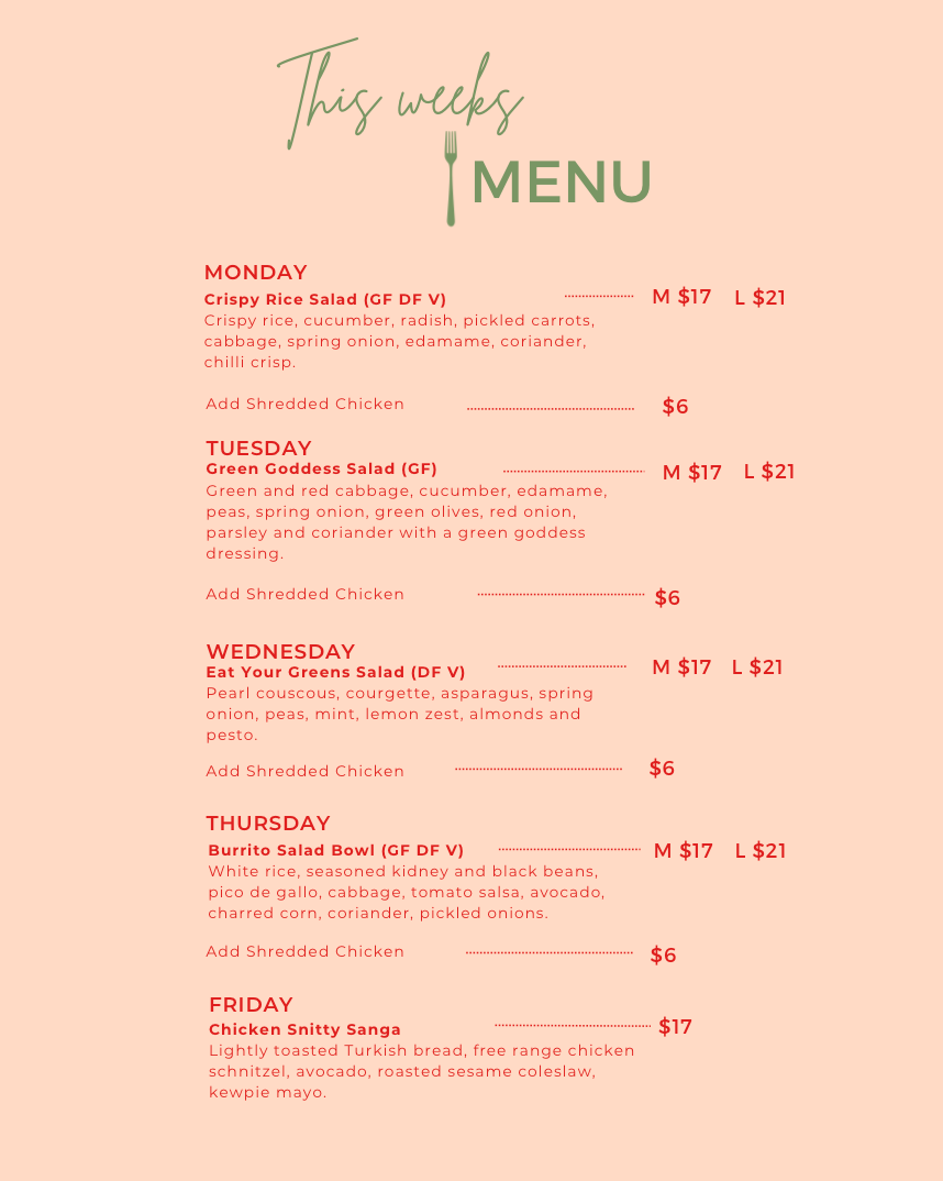 For all ingredients and allergens, please see the description of each lunch, or for further clarification feel free to call or message me on 027 464 6791.