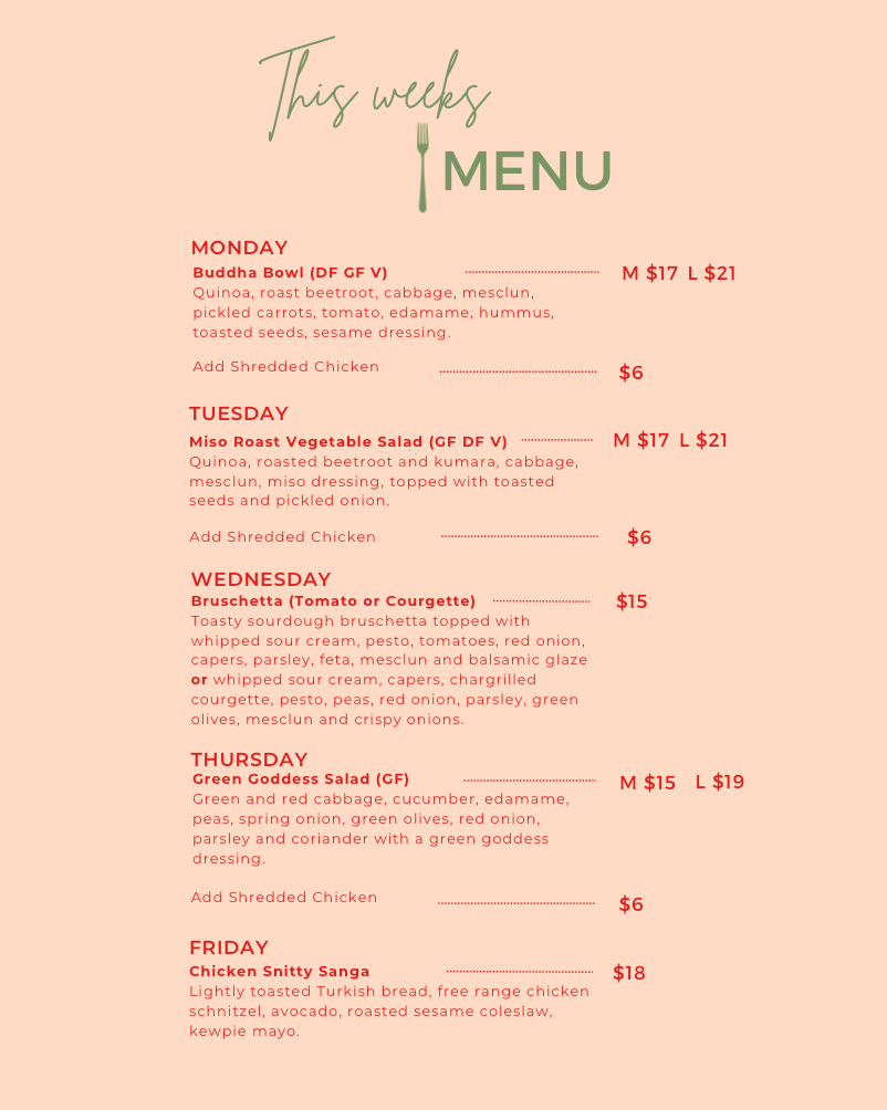 For all ingredients and allergens, please see the description of each lunch, or for further clarification feel free to call or message me on 027 464 6791.