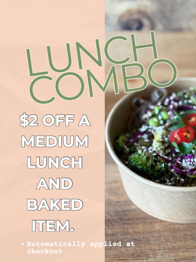 Lunch Combo. $2 off any medium lunch and baked good. Discount automatically applied at checkout.